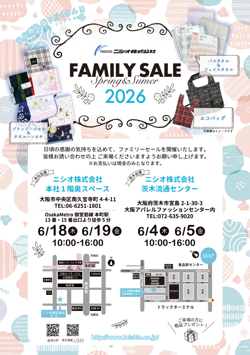 下記日程にて、ファミリーセールを開催させていただきます!